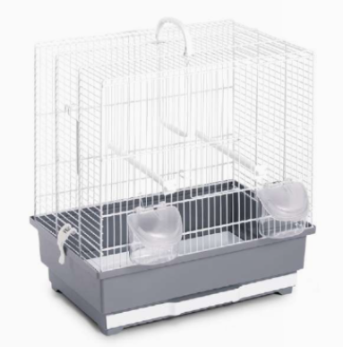 Gabbia per uccelli completa di mangiatoie, posatoi ed altalena, ha il fondo estraibile per una facile pulizia ordinaria.